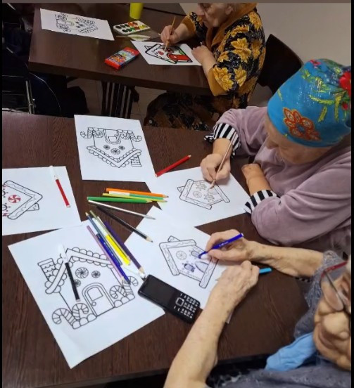 Вернуться ко всем новостямМы провели серию занятий посвященных определенной тематике и изготовлению поделок, в декабре это конечно же Новый год! Такие занятия помогают стимулировать память и внимание, развивать мелкую моторику, выражать эмоции и поддерживать позитивное эмоциональное состояние.Создание композиций и роспись со сложными декоративными элементами, Рисование и раскрашивание — доступные практики, которые снижают тревожность и помогают сосредоточиться на текущем моменте. Можно использовать разные материалы: цветные карандаши, мягкие фломастеры, акварель или гуашь. Все это мы не забываем совмещать с музыкальной терапией.